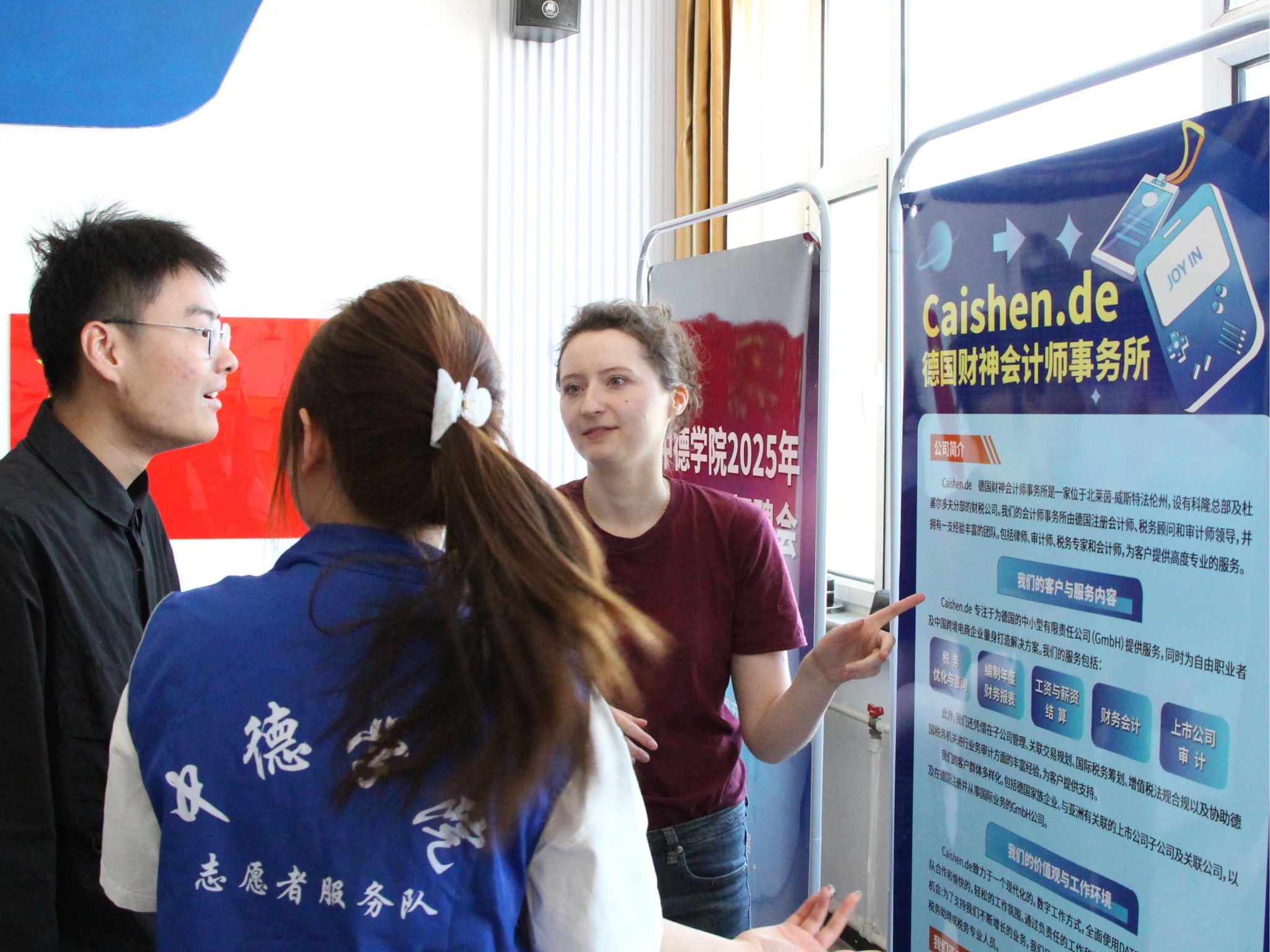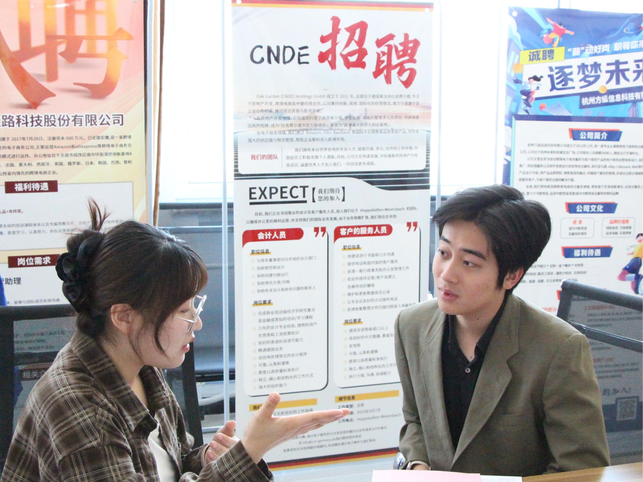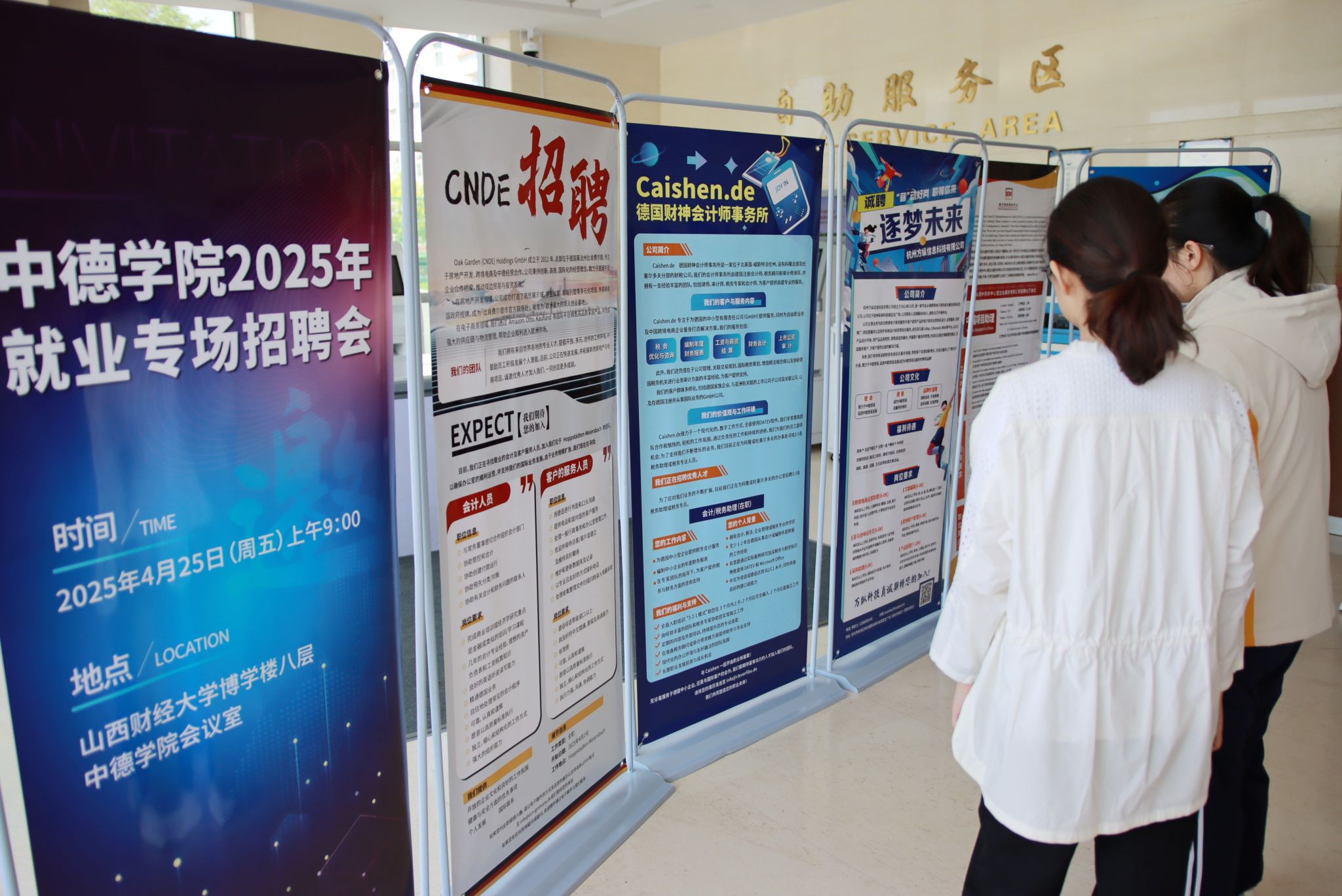 本次招聘会吸引了DCBC德中商务中心暨企业服务有限公司、Cai Shen会计师事务所、Oak Garden(CNDE)Holdings GmbH、杭州万纵信息科技有限公司、山西华德冶铸有限公司、山西洋山建设集团有限公司、山西丝绸之路科技股份有限公司等德资企业,以及美锦醋业股份有限公司、山西黄河中药有限公司、斑马环保等校友企业参会,提供招聘岗位55个,2021级和2022级300余名学生到场。