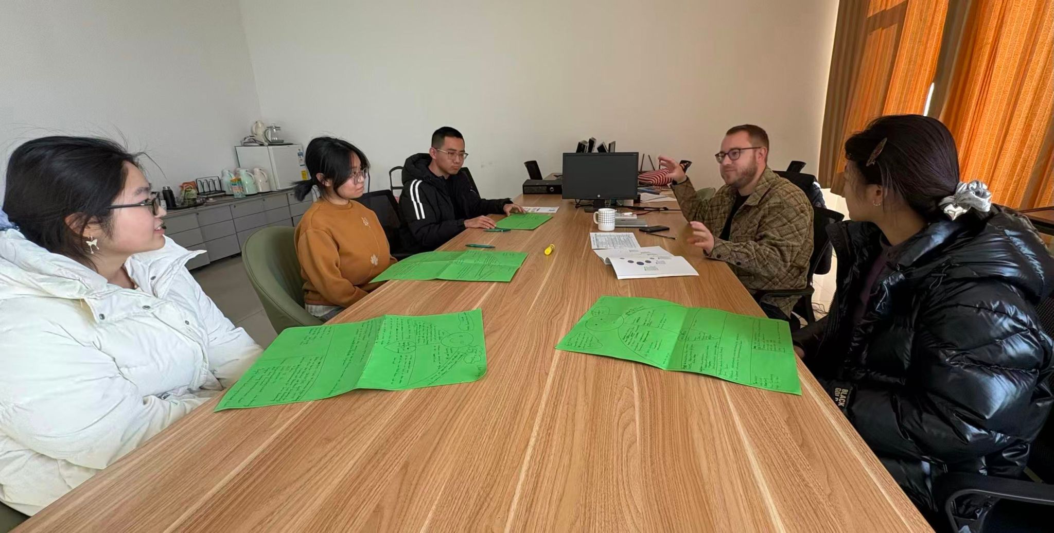 11月25日晚,项目首次辅导活动在博学楼812教室温馨开展。助教Lutz与6名学生围坐交流,共同开启一段别开生面的职业探索旅程。课程伊始,Lutz展示了一幅“甲板掌舵”图,生动比喻“每个人都是自己职业航程的船长”,引导学生主动把握人生方向。随后,同学们在轻松互动中进入职业生涯规划的第一步:定位评估。本次活动突破传统形式,以“创意卡纸画”为媒介,学生们在绿色卡纸上绘制个人形象,并系统填写学习背景、证书资格、实习经历、语言能力等11类核心信息,将抽象的自我认知转化为直观的“能力地图”。通过这一过程,大家不仅全面梳理了自身经历与价值观,也在交流中进一步明确了职业目标,为后续发展奠定了坚实基础。