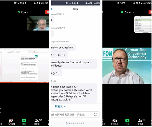 万水千山从容飞渡,中德携手保证教学。澳门正规电子游戏平台与FOM大学共同协商,稳定执行教学安排,澳门正规电子游戏平台2019级学生《重建管理》及《学术方法论》两门课程于8月初正式按时开课,由FOM大学三位教授主讲,采取线上教学方式进行。