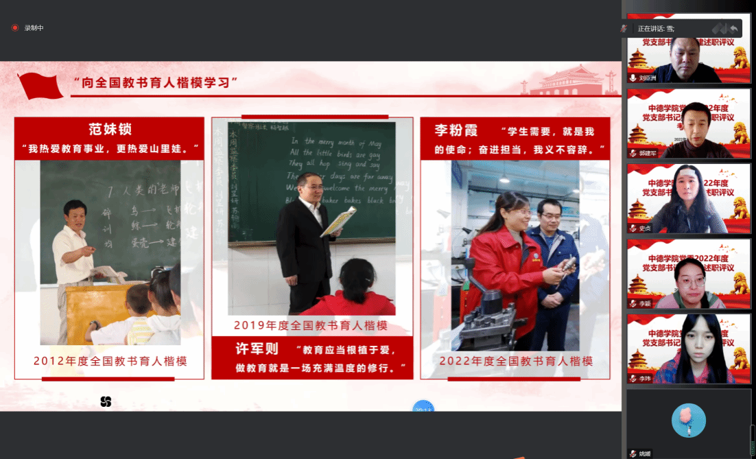 为充分发挥先进典型的示范引领作用,引导教师争做党和人民满意的“四有”好老师,营造尊师重教的良好风尚,12月27日下午,澳门正规电子游戏平台以线上方式开展主题党日活动,组织全体党员教师学习全国教书育人楷模先进事迹。学院党委书记刘臣洲、党委副书记、院长史贞、党委副书记郭建军以及党政支部和学生党支部全体教工党员参加会议。会议由学院党委副书记郭建军主持。