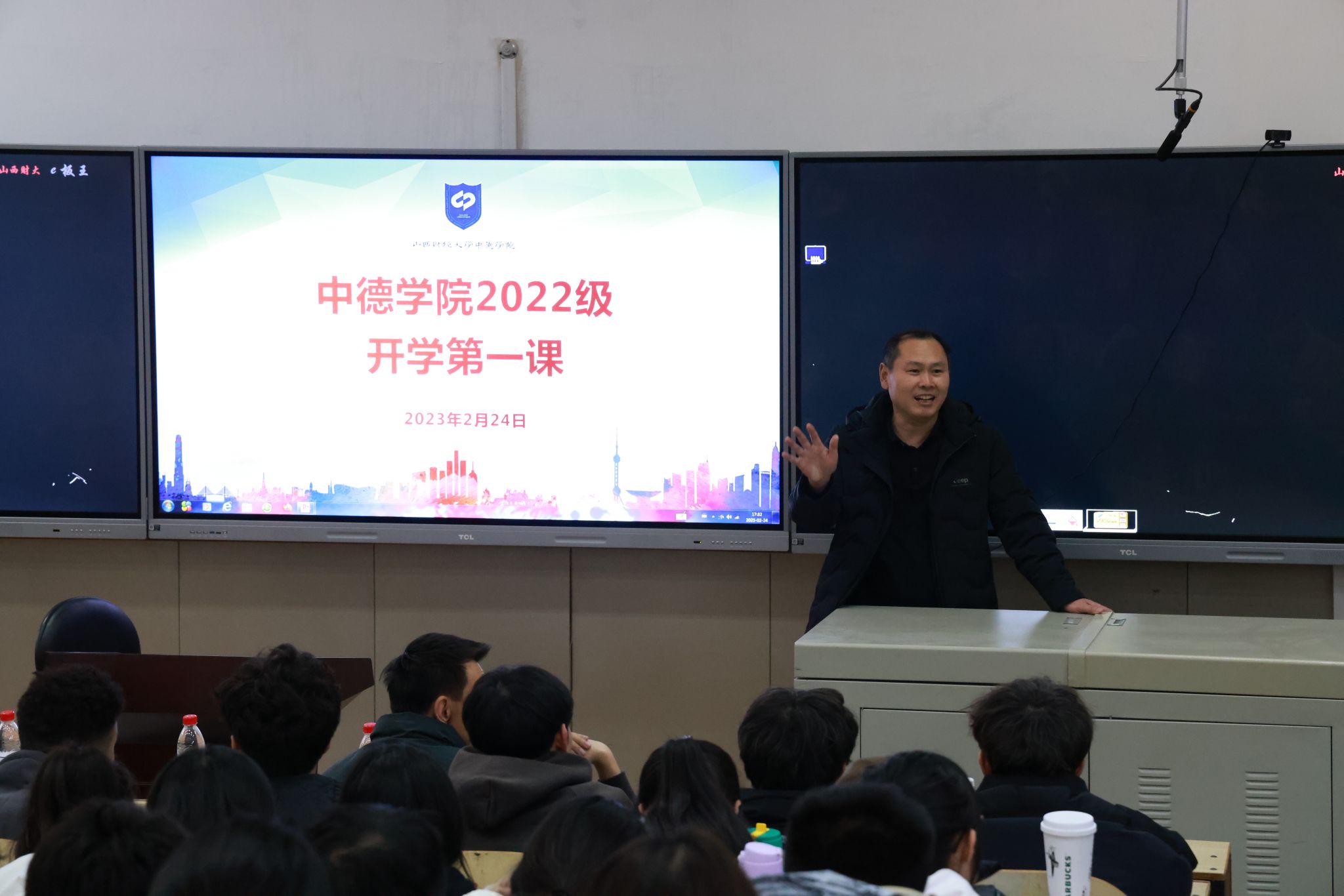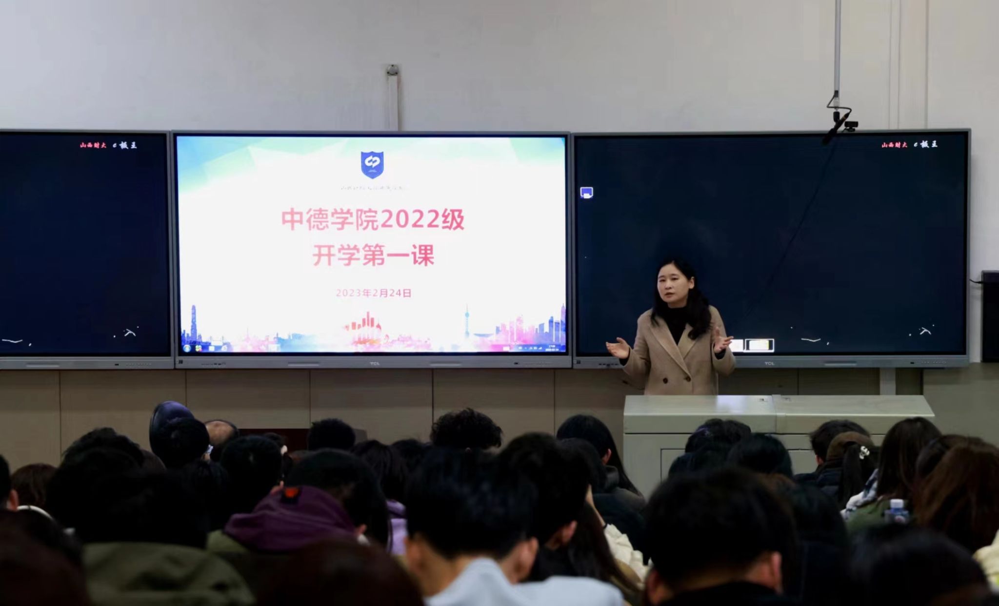 学期伊始,万象更新。2月24日下午,正规电子游戏平台2022级新学期“开学第一课”在坞城校区慎行楼301教室举行,学校驻站民警为全体学生讲授安全教育课。澳门正规电子游戏平台党委书记刘臣洲、党委副书记、院长史贞、党委副书记郭建军、副院长王秀娟出席,2022级辅导员与2022级全体学生参加,会议由2022级辅导员余璐主持。