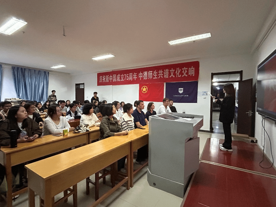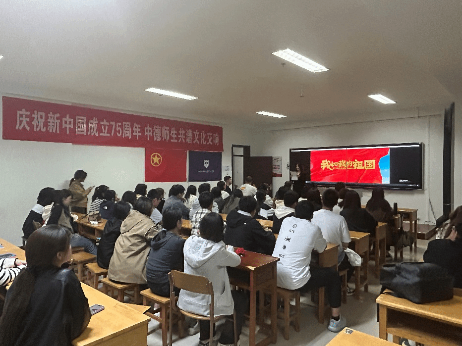 为庆祝新中国成立75周年,引导学生厚植爱国情怀、弘扬爱国主义精神,9月29日晚,澳门正规电子游戏平台在博学楼727开展“德语电影之夜——观影《我和我的祖国》”活动。德国教授和师生代表们共同参加此次活动。