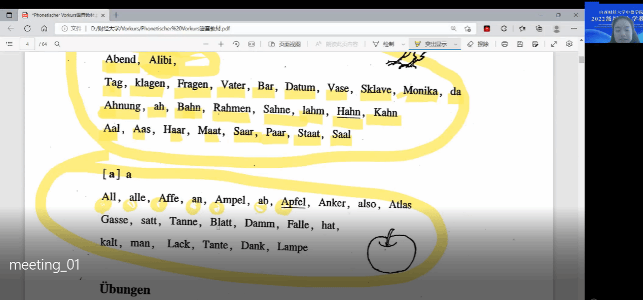 对于语言教学来说,线上教学更难营造良好的外语环境,受网络状况、学习环境、一对多模式的制约,更难进行语音、会话等练习。从语音课开始的德语学习,需要学生跟着教师去感受每个字母的发音部位和发音技巧,用线上教学模式来进行更是难上加难,更需要我在备课、讲课、课后回顾、作业批改等方面付出加倍努力。