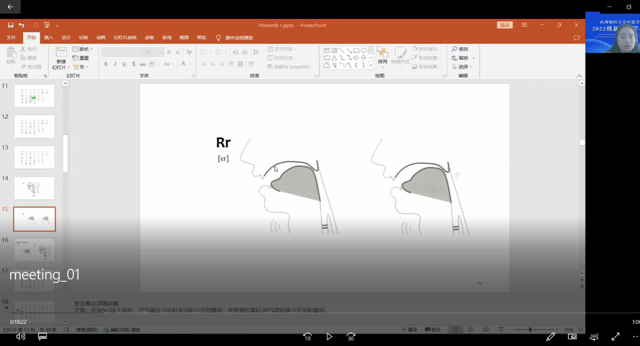 授课:腾讯会议线上直播,以教师讲解为主,以PPT、音频、视频、电子版教材为辅。所有学生按照要求修改会议名称、打开摄像头,在发音练习时打开麦克风发言,或利用腾讯会议分组功能,两人或三人小组互相纠正发音。