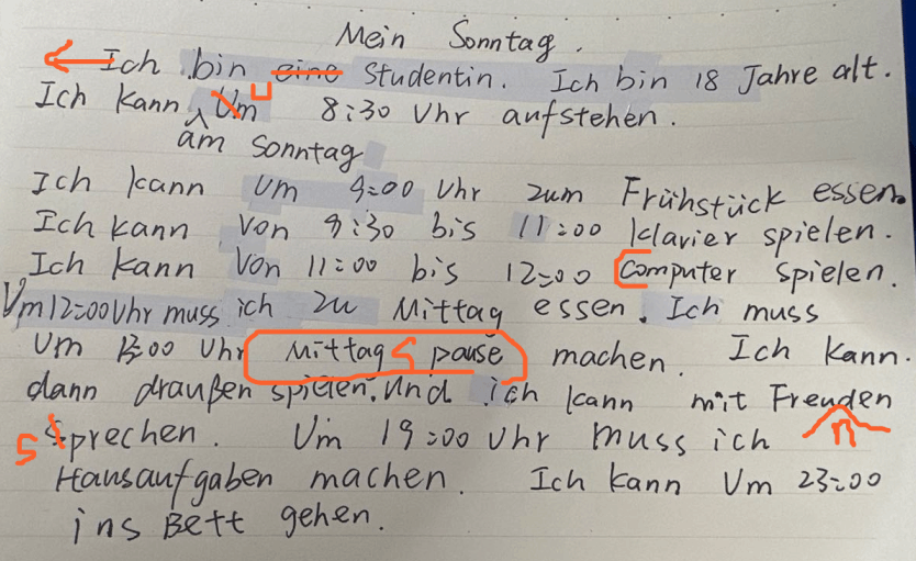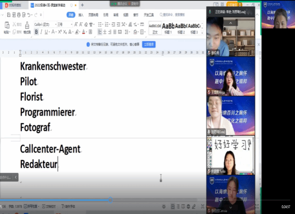 澳门正规电子游戏平台德语四班二零二二学年的第十七个教学周介于12.19-12.23日,28个课时,按既定教学计划本周涉及Studio 21-A1-Einheit 8 - Berlin sehen (第8单元:看见柏林)。本周4班26位同学能全部按时到课,除个别同学因疫情影响身体不适请求不开摄像头,但保证在课外,课上回应基本积极。但课后作业仍有个别补交、漏交及不交现象存在。