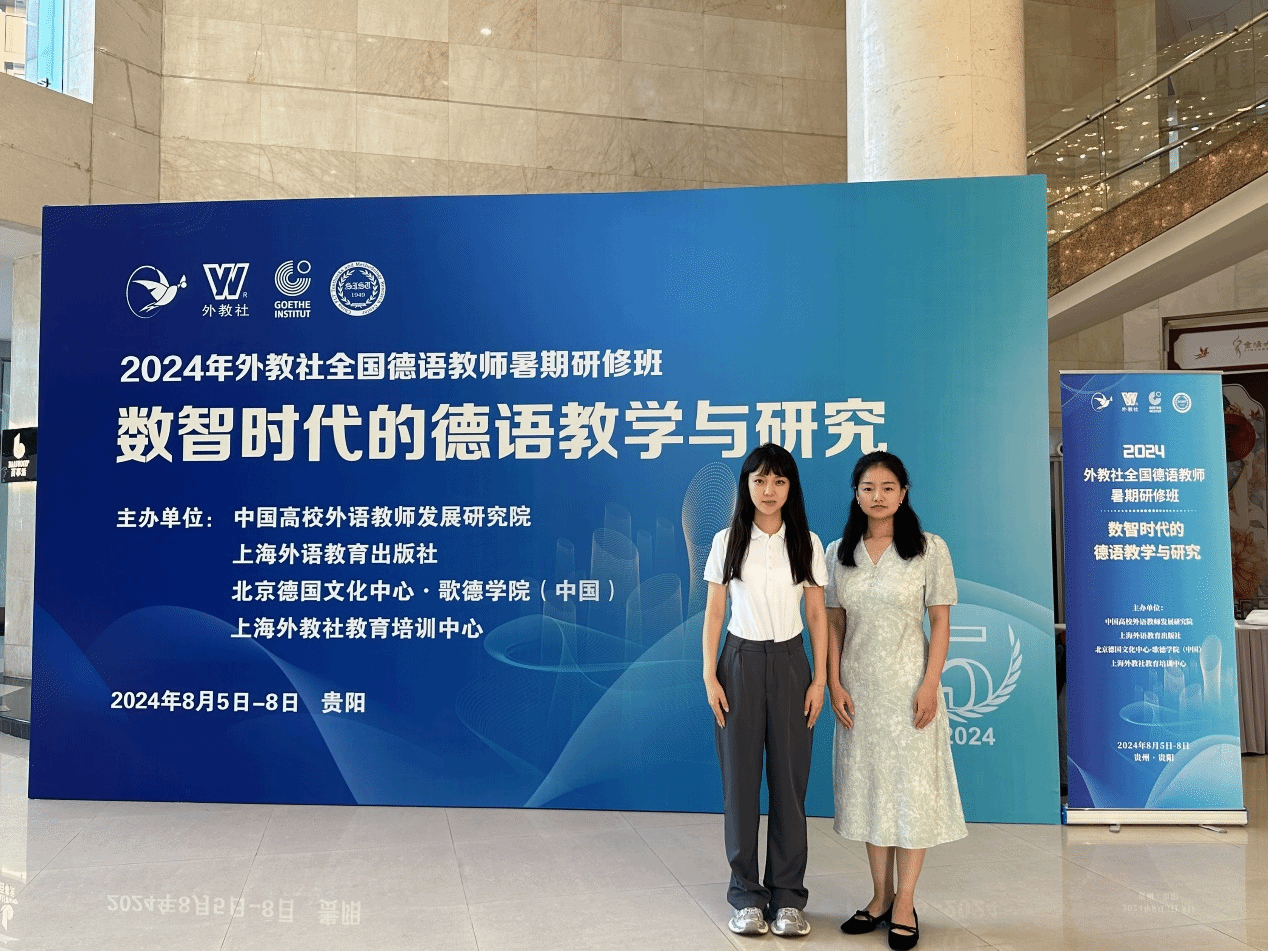 2024年8月5日至8月8日,2024年外教社全国德语教师暑期研修班在贵阳举办,此次研修班由中国高校外语教师发展研究院、上海外语教育出版社、北京德国文化中心·歌德学院(中国)及上海外教社教育培训中心共同主办的,以“数智时代的德语教学与研究”为主题,邀请中德两国的外语专家学者以及教育技术领域的专家,与全国高校及中学德语教师共同研讨德语课程建设与教学设计、德语教学资源的共建共享、人工智能在德语教学和科研中的应用等主题,赋能德全国德语教师发展。澳门正规电子游戏平台德语教研室的李玮、王萌莎两位老师作为教师代表参加了此次研修班并获得培训证书。