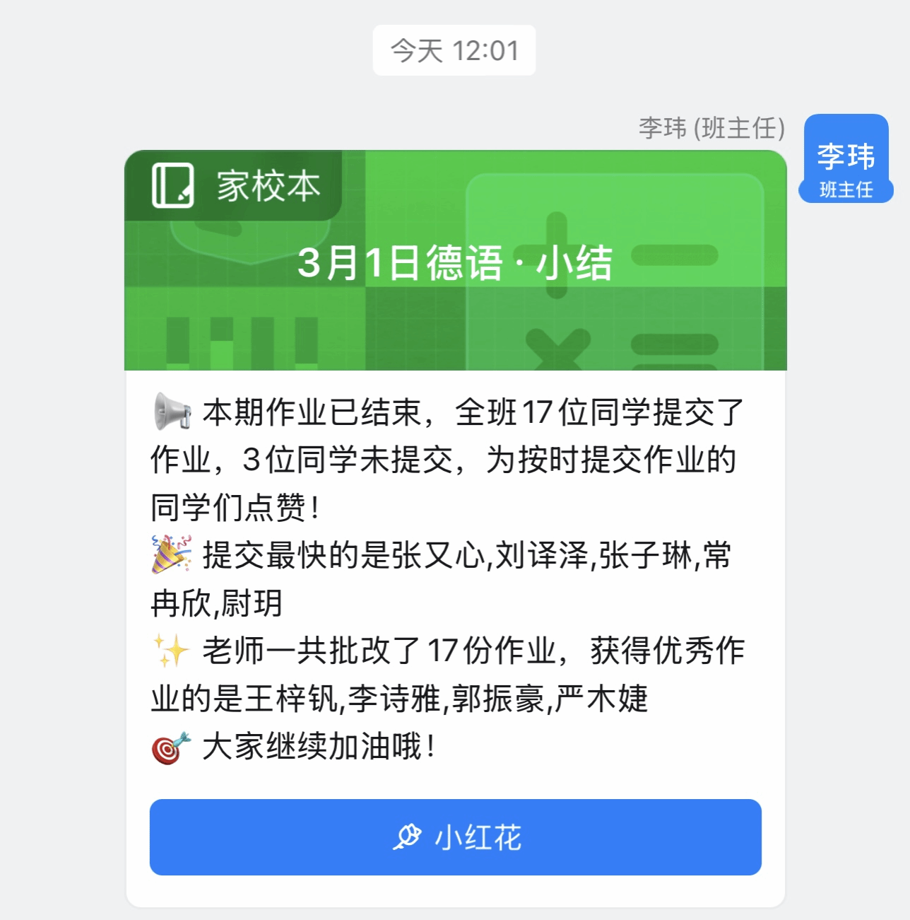 周末布置小测试,学生通过钉钉提交。我批改作业,标注高频问题并整理成文档。针对个别学生的问题,我课后逐一解决,帮助他们打牢基础。