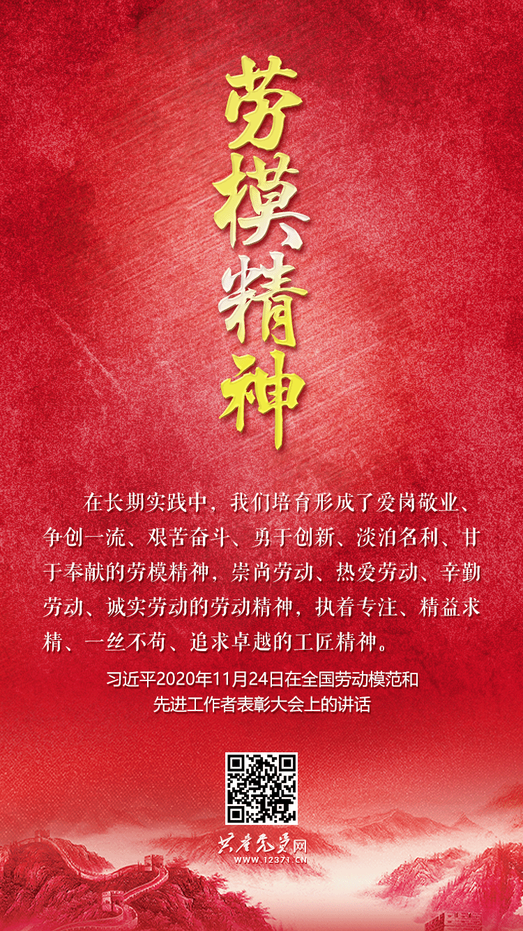 崇尚劳动、热爱劳动,是中华民族五千年来的传统美德,也是马克思主义劳动观的生动体现。劳动模范是时代的先锋、民族的楷模,他们身上承载和彰显的劳模精神一直发挥着引领作用,丰富和拓展了中国精神内涵,充分展现了我国新时代工人阶级和劳动群众的高度自信,已成为社会主义核心价值体系的重要组成部分。作为青年人的我们应当大力弘扬劳模精神,深刻学习劳模精神内涵,深刻感悟蕴含其中的精神元素,并在实践中体悟劳模精神,在磨炼意志和增长才干中感受劳动的乐趣和收获,从而培育辛勤劳动、诚实劳动、创造性劳动的精神气质。